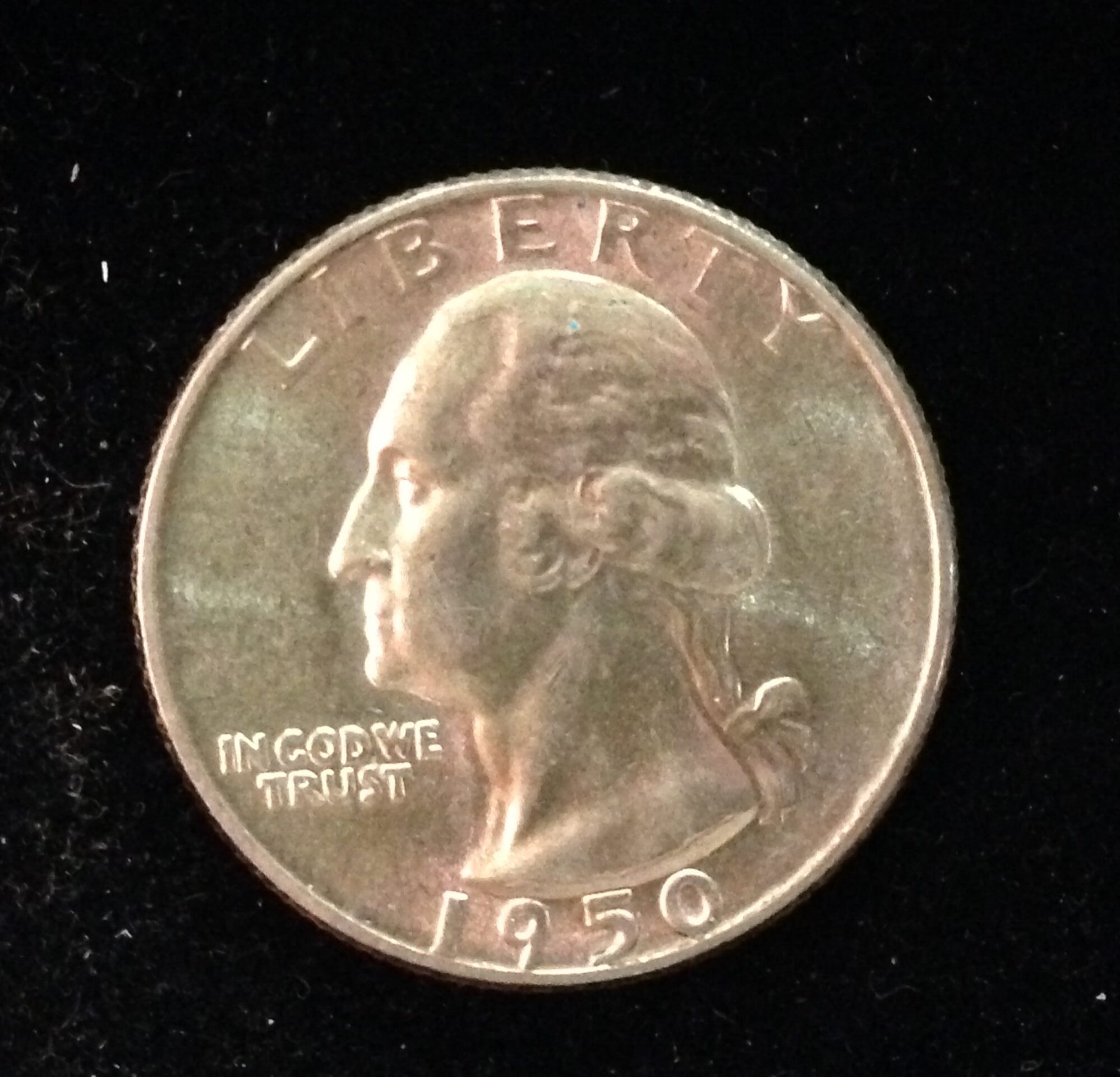 Blast white and amazing luster. Subtle hints of golden toning along the rims. A great BU Washington.